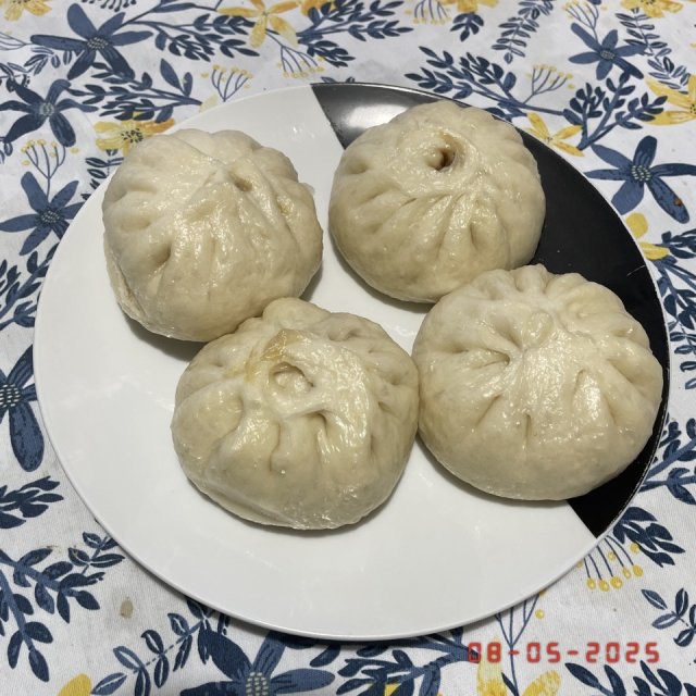 刚出锅的牛肉馅包子,好好吃呀!风卷残云,一会儿功夫我俩就每人干掉了三个。配料有姜末,洋葱,白萝卜,胡萝卜,生抽,老抽,香油,胡椒粉,白葡萄酒。