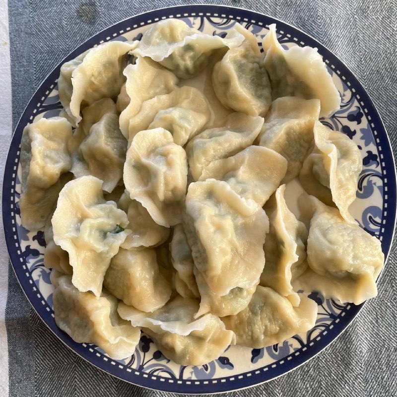 韭菜萝卜鸡蛋虾仁馅儿和牛肉馅儿。都很美味。娃吃撑了。