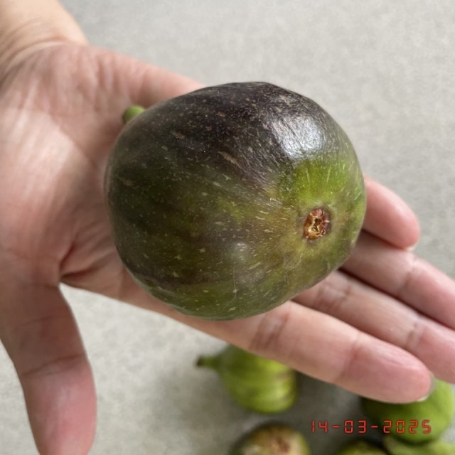 自己树上的无花果还没熟,邻居送来了她家的无花果。好大啊!